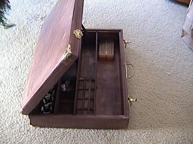 view, brass corners protect the edges. The corners are all 45 degree