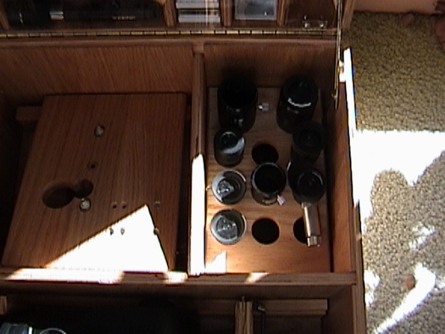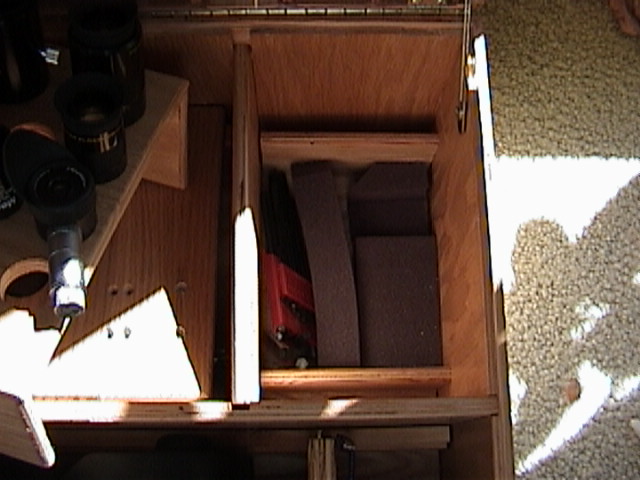 extra stuff can be put below the eyepiece board. Off to the left,